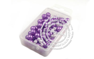 紫色系珠光塑胶珠入塑胶盒。