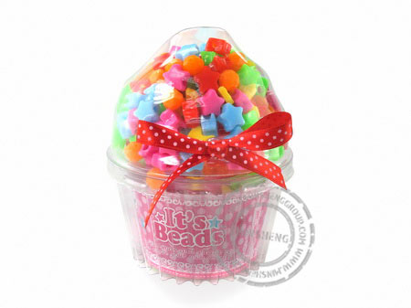 产品描述:彩色杂款珠入杯子蛋糕盒系列。塑胶珠配套串珠绳,创作属于您自己的珠饰。